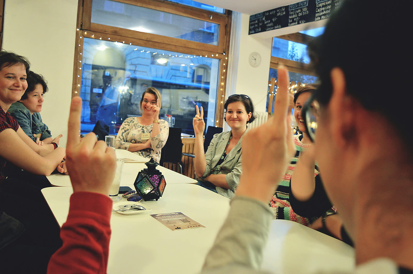 Ebben a “titkos szerepes” csapatépítő játékban a résztvevők egy asztalt kényelmesen körbe ülve beszélgetnek egymással. Megpróbálják úgy irányítani a társalgást, hogy eltereljék magukról a gyanút, és apró jeleket keresve kikutassák maguk közül a “vérfarkas” társukat.
